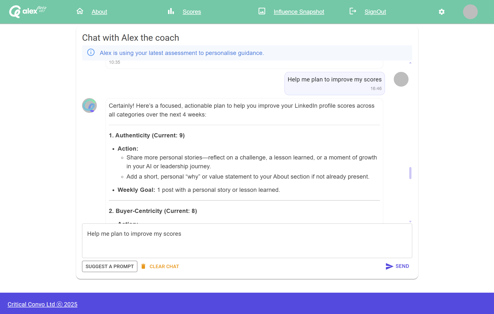 Offering dynamic assessments and tailored insights, Alex empowers sales professionals to build genuine personal brands, foster meaningful connections, and achieve real, measurable success.